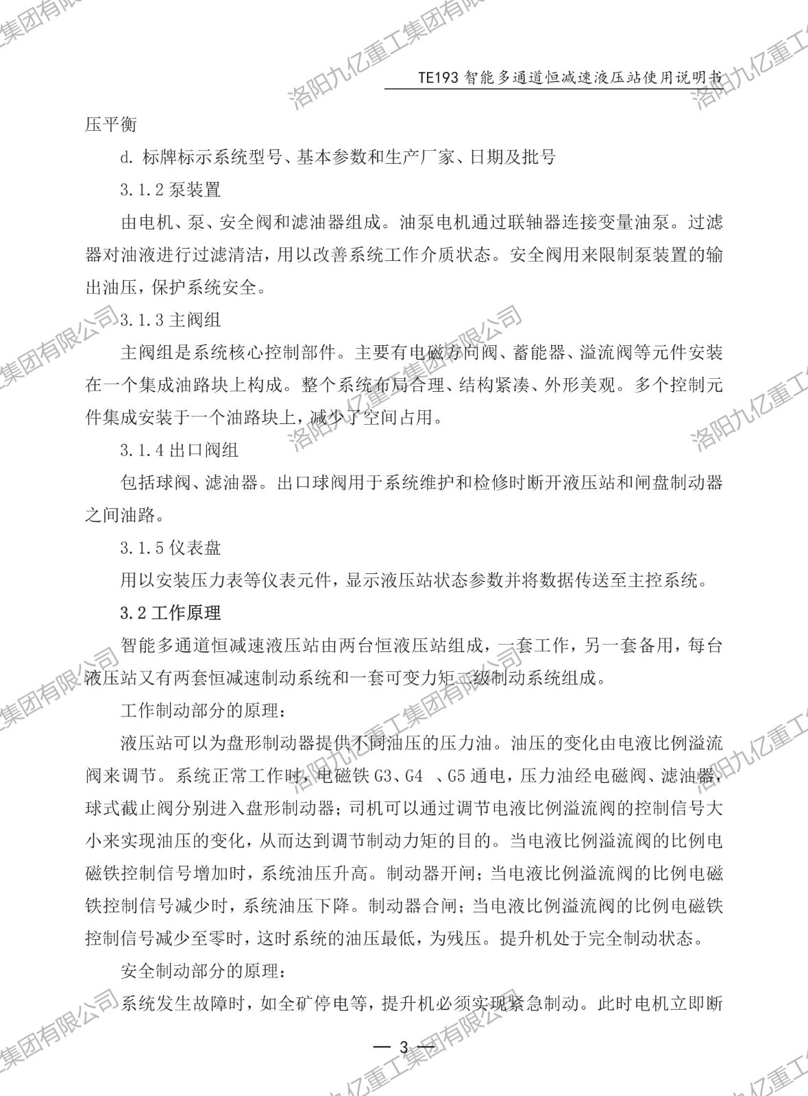 智能多通道恒减速液压站TE193使用说明书